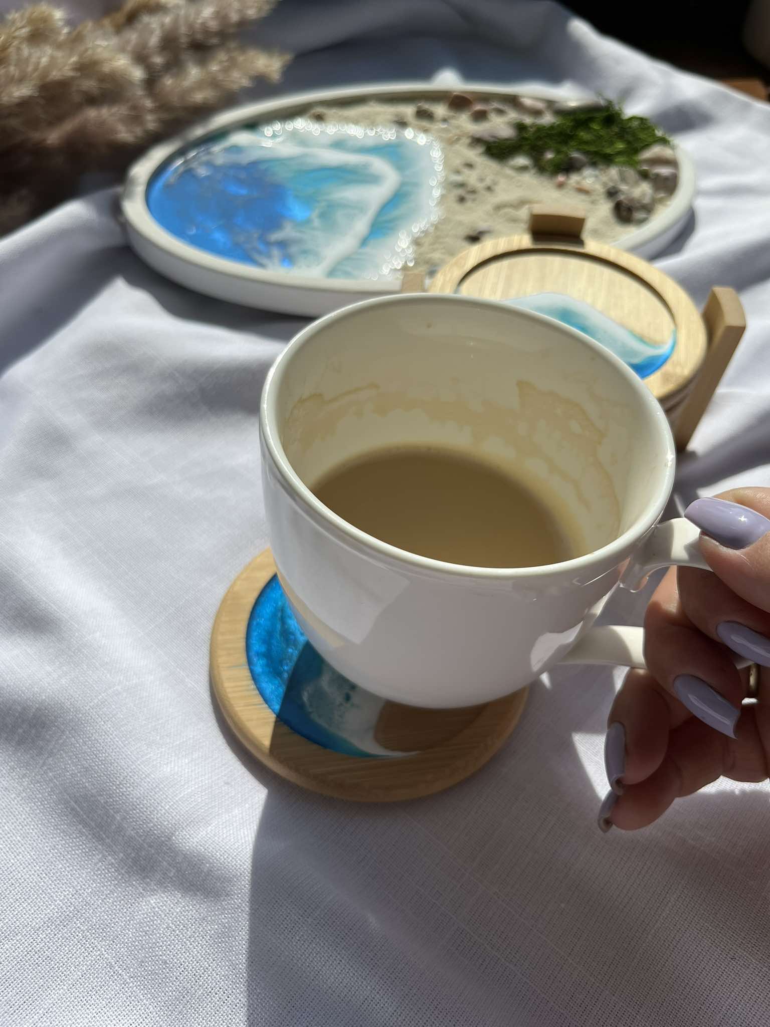 Dodaj do swojego domu nutę nadmorskiego klimatu z naszymi ręcznie wykonanymi podstawkami z naturalnego drewna, ozdobionymi unikatową falą z żywicy epoksydowej. Każda podstawka jest indywidualnie tworzona z dbałością o najdrobniejsze szczegóły, dzięki czemu każda sztuka to wyjątkowe dzieło sztuki użytkowej.